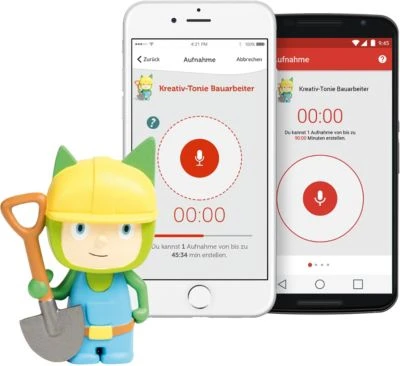 Mit der dazugehörigen, kostenlosen Smartphone-App können eigene Sprachaufnahmen aufgezeichnet und dem Kreativ-Tonie zugewiesen werden.